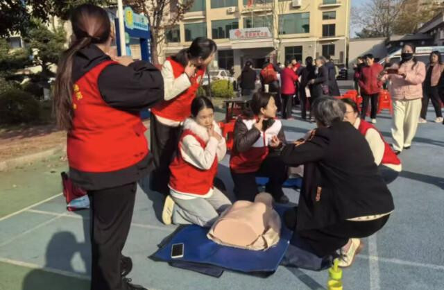 (12月3日,益阳市赫山区龙岭工业园银山社区,益阳市“红娘子军”退役军人志愿者服务队教老年人急救知识。受访者供图)